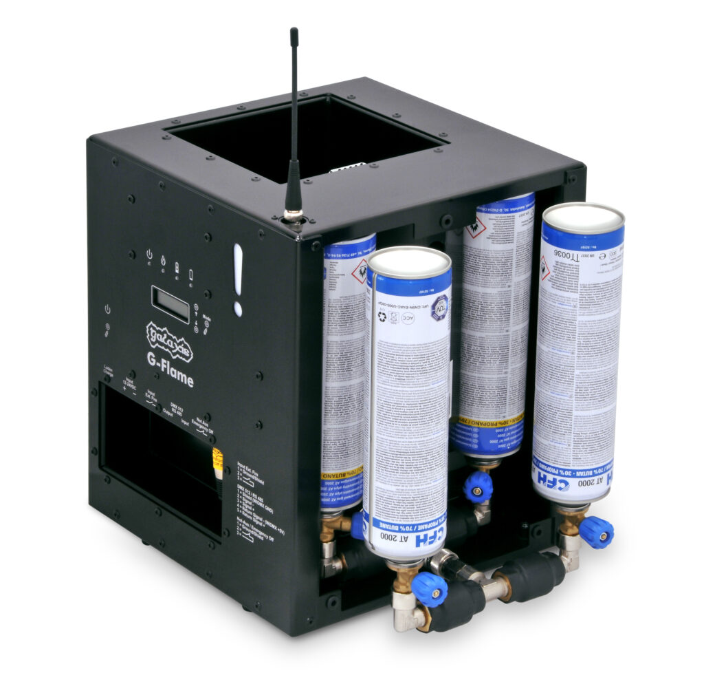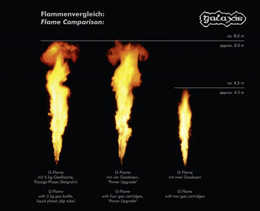 G-Flames stammen vom deutschen Hersteller Galaxis Showtechnik GmbH. Sie sind CE-zertifiziert und verfügen über diverse Sicherheitsfeatures.