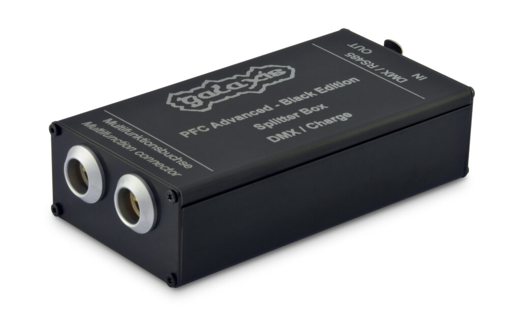 Splitter Box zum gleichzeitigen Anschluss und Betrieb von DMX-512 bzw. RS485-Kabelschnittstelle und Ladegerät am PFC Advanced Black Edition.